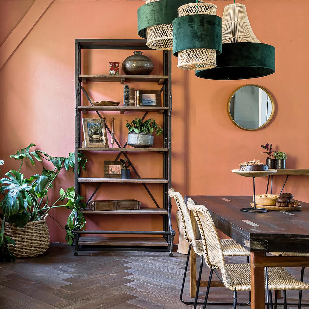 The whole is delivered flat-pack, which makes it easy to transport. Size excluding bar and handles: 107 x 35 x 233 cm Size including bar and handles: 107 x 61 x 233 cm Available with black wooden shelves and natural wooden shelves. shelves and natural wooden shelves.