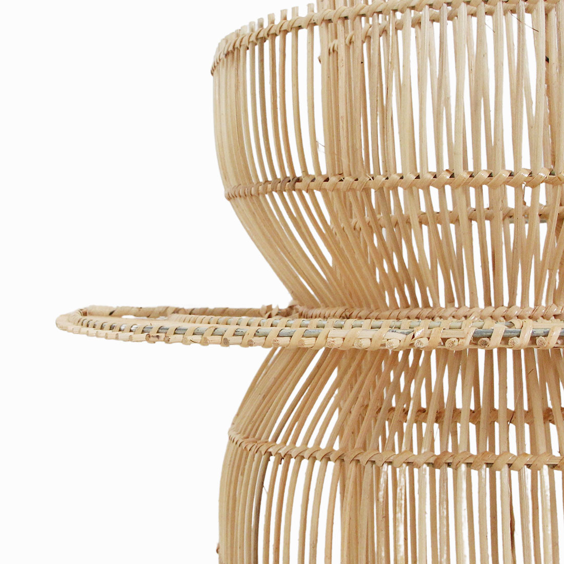 Natuurlijke rotan, Katoenen electrisch koord, standaard fitting en een metalen plafondkapje.
